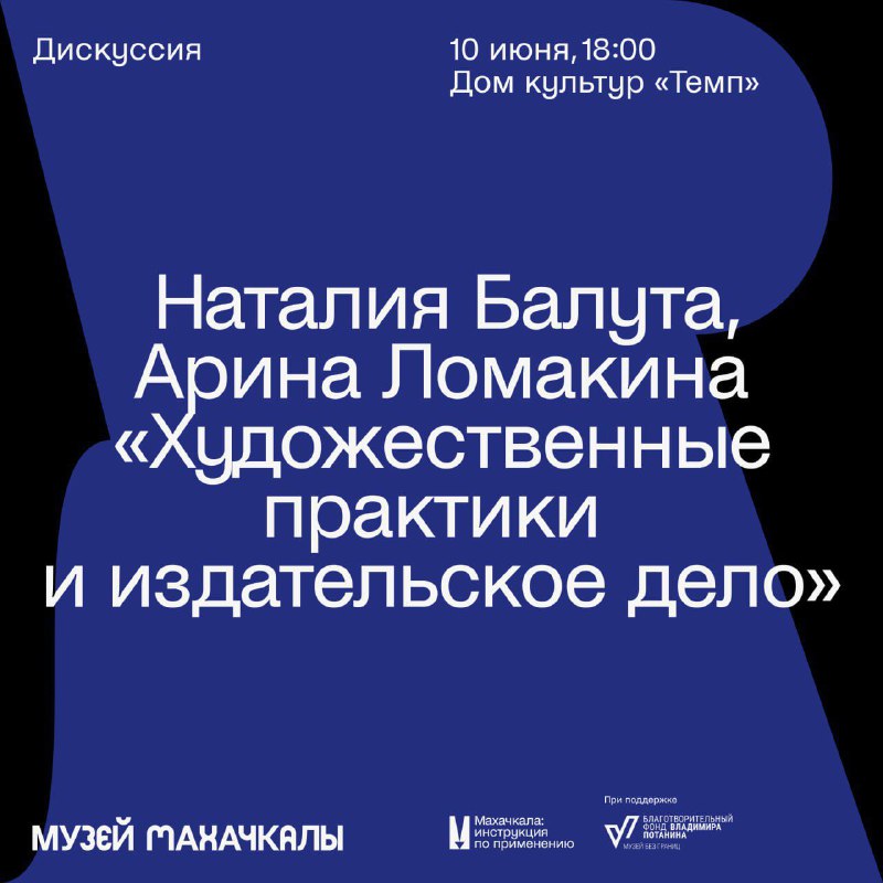 10 июня в 18.00 состоится дискуссия Наталии Балуты, Арины Ломакиной — «Художественные практики и издательское дело» в пространстве Дом культур «Темп», книжный магазин «Переплёт». Художницы Арина Ломакина и Наталия Балута поговорят о зинах, фотокнигах и книгах художника
