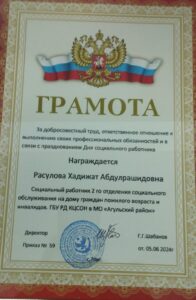 Гьер са инсандис садтти илгубалас Iае кар адава, хъара Iае э Iуьсе кIилихъди тек хьучин. Амма уч миштти хьасттава пуна сайинра эхIттиб хъавейдава. Джигьилди амий курар лихунаригьас сайира фикир аркьайдава садтти илгванасе пуна, хуппай са бицIиди яш вередегьен гъавурдиъ архьа, вахттуни хизанра дахьуна садтти илгванде учра учин читинвелара. Садтти илгуна, джандин сагъвелра адавай, фера акьас агъдарукьа вахттуни багулив йиркIв руцIа, Iегвалвел хъая, нае арайи кканчира гъил гьучихьас хIезур инсан багулив хьуб ппара хIа кар э. Гьемиштти хье вахттуни инсандин муш кеяфра, кумак аркьафра ве социальный работник. Сад гьемебурикес э Расулова Хадижат Абдурашидовна.
