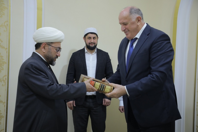 В свою очередь, Абдулмуслим Абдулмуслимов поблагодарил шейха за прием и передал слова приветствия от Главы Дагестана Сергея Меликова.