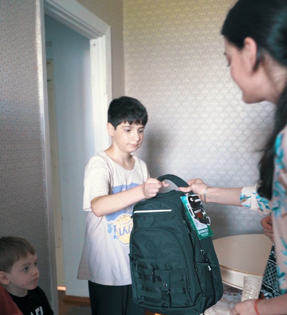 У подопечных Фонда нет возможности полноценно собрать ребенка в школу и приобрести необходимые для занятий принадлежности. От имени парламентария его помощники вместе с представителями фонда «Инсан» посетили многодетные семьи, оказавшиеся в трудной жизненной ситуации, и передали рюкзаки с наборами.