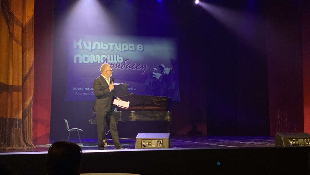Мероприятие вел автор проекта «Культура в помощь Донбассу» Андрей Соколов. Он является сопредседателем проекта Народного фронта Подмосковья и куратором сбора средств для гуманитарной поддержки «Всё для победы».
