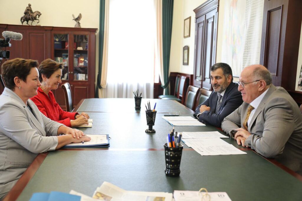 Председатель Правительства РД Абдулмуслим Абдулмуслимов провел встречу с представителями Совета Межпарламентской Ассамблеи СНГ Юлией Ильиной и Наталией Амбурцевой по вопросу подготовки ко второму международному форуму «Устойчивое развитие горных территорий».