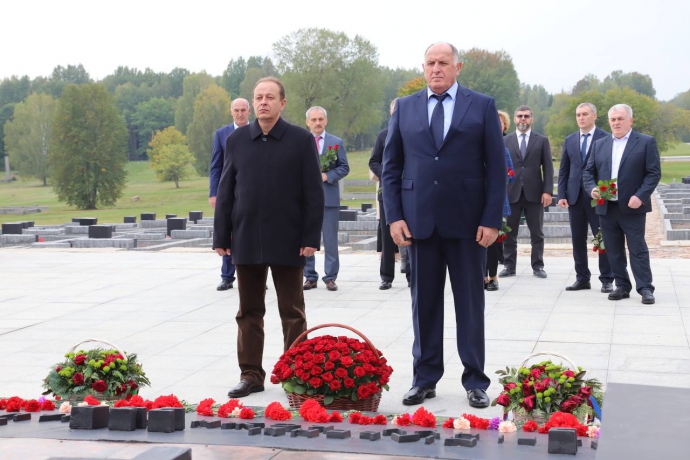 Дагестанская делегация под руководством Председателя Правительства Дагестана Абдулмуслима Абдулмуслимова рамках рабочей поездки в Республику Беларусь 3 октября посетила мемориальный комплекс «Хатынь».