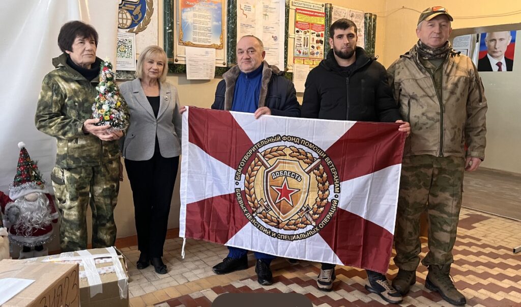 В составе делегации Абакар Абакаров, Муслимат Абдулкадырова, Славик Аликович и член Совета фонда Алексей Шашкин. Они передали бойцам добровольческих формирований маскировочные изделия, тёплые вещи, вязанные носки и шарфы, изготовленные заботливыми женскими руками, а также продукты питания, специальное снаряжение и оборудование. Представитель Совета ветеранов, помощник главы города Махачкала Муслимат Абдулкадырова от имени жителей города и всех граждан республики поблагодарила бойцов за тяжелую ратную работу и пожелала скорейшей победы в битве за мир и покой в наших домах.