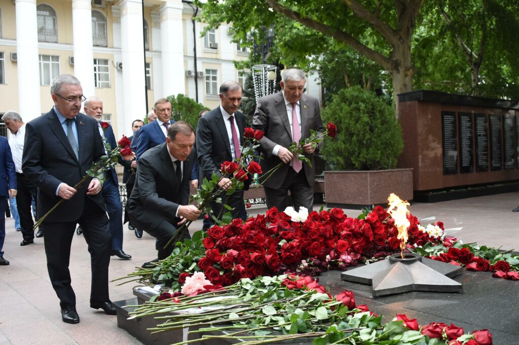 Вместе с ним возложили цветы и члены Президиума республиканского парламента.
