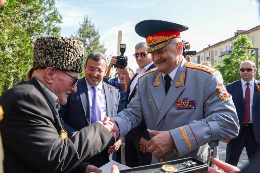 Сергей Меликов вручил фронтовику Мусе Багаудинову орден Почёта Республики Дагестан I степени и юбилейную медаль «80 лет Победы в Великой Отечественной войне 1941-1945 гг». Торжественная церемония состоялась в Каспийске во время открытия бюстов Героев России в преддверии Дня Победы.