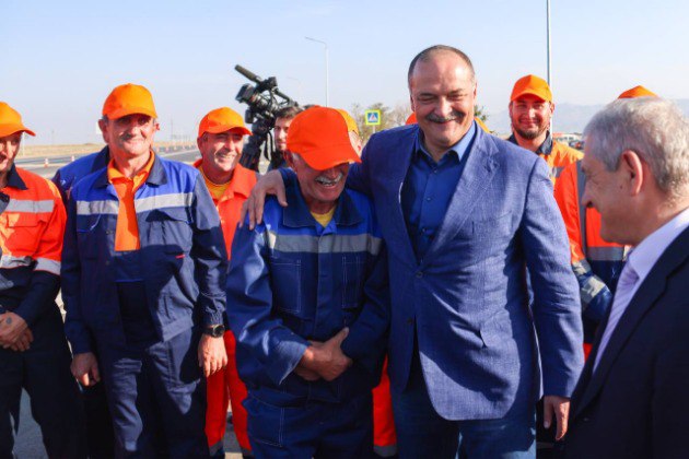 Глава Дагестана Сергей Алимович Меликов открыл вместе с дорожными строителями участок федеральной трассы на территории Кумторкалинского района.