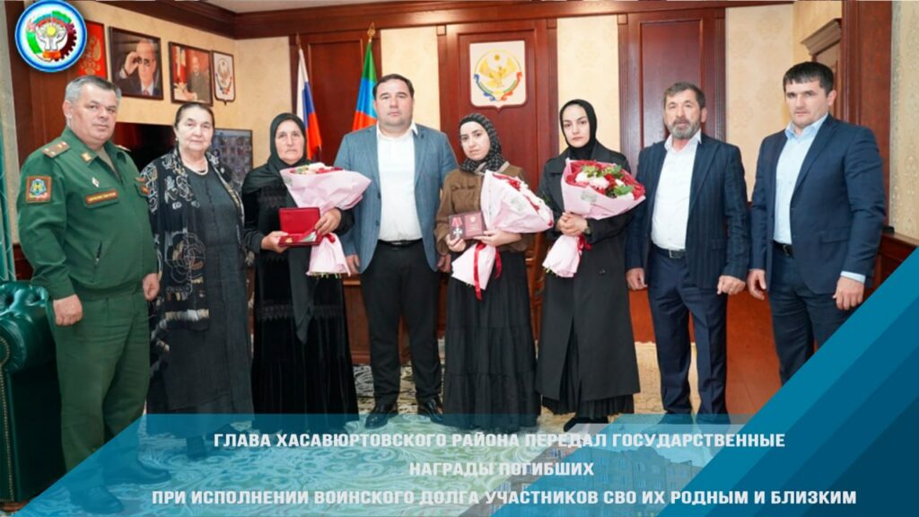 Сегодня Глава МР Арсланбек Алибеков, передал Орден Мужества (посмертно) Курбанова Арслана и Орден «За заслуги перед Отечеством 4 степени с мечами» (посмертно), Гаджиева Абусупьяна, их родным и близким. Передавая награды вдове и дяде Курбанова Арслана, вдове и матери Гаджиева Абусупьяна, Глава района выразил им слова соболезнования, поблагодарил за их мужество и отвагу.