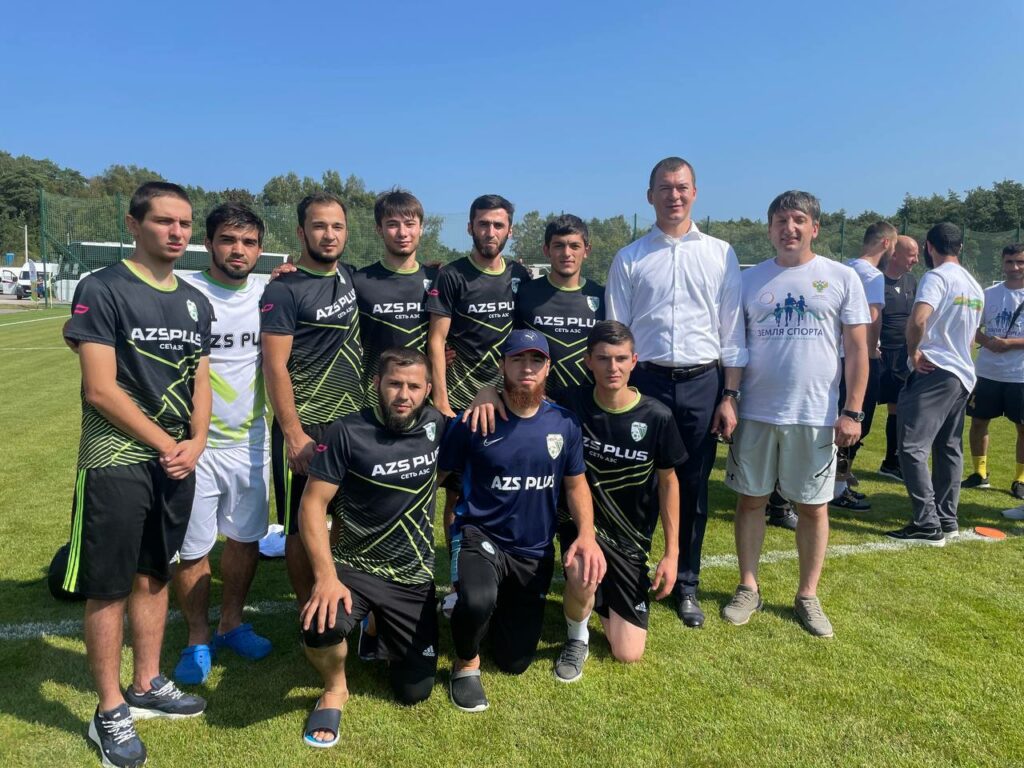 Команду Карабудахкентского района во главе с замруководителя Минсельхоза Дагестана Зурабом Куччаевым на соревнованиях по мини-футболу поприветствовал министр спорта России Михаил Дегтярев. Он поблагодарил всех участников турнира за активную позицию.