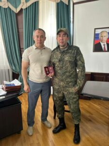 18 августа Глава Ногайского района Джамалутдин Эсиргепов провел встречу с участником СВО Арсеном Нургушиевым из с.Таьтли-Булак.