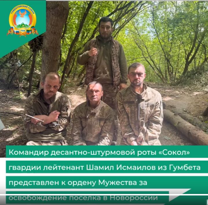 Командир десантно-штурмовой роты «Сокол» гвардейской бригады морской пехоты Тихоокеанского флота России, кавалер медали «За отвагу» гвардии лейтенант Шамил Исмаилов из Гумбета представлен к ордену Мужества за освобождение посёлка в Новороссии.