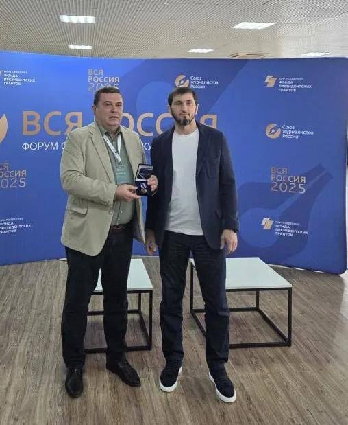 Сегодня в Сочи в рамках медиафорума «Вся Россия-2025» Председатель Союза журналистов России Владимир Соловьев наградил ряд журналистов страны наградами СЖР России.
