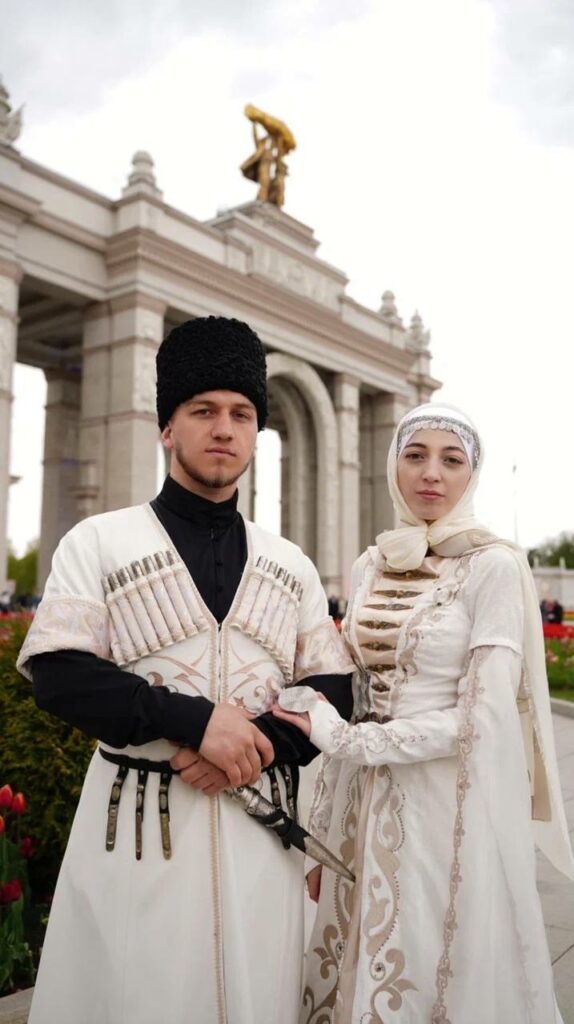 Пара из Дагестана — Мурад Магомедов и Сапият Амиргамзаева в национальных костюмах украсили массовое свадебное торжество.