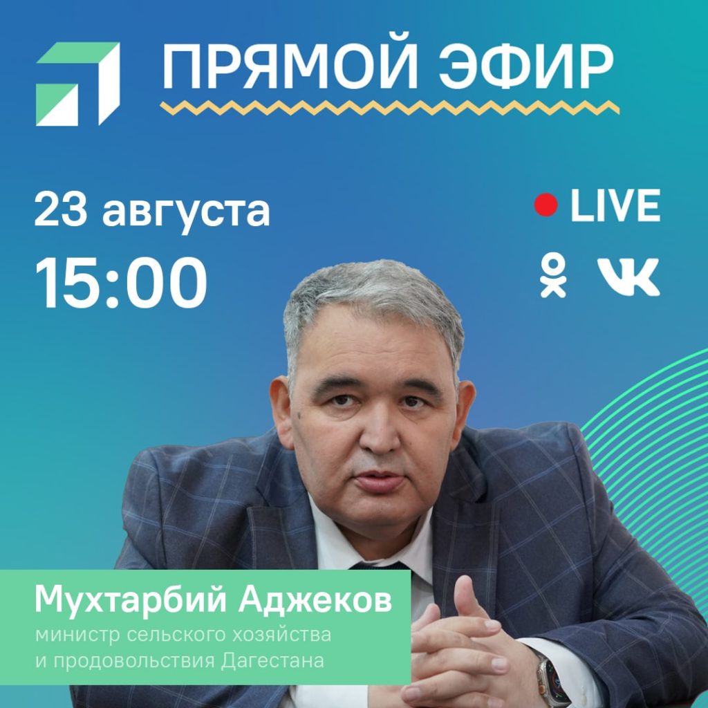 Вопросы реализации сельхозпродукции и поддержки аграриев в Дагестане будут обсуждены 23 августа в прямом эфире с министром сельского хозяйства и продовольствия региона Мухтарбием Аджековым.
