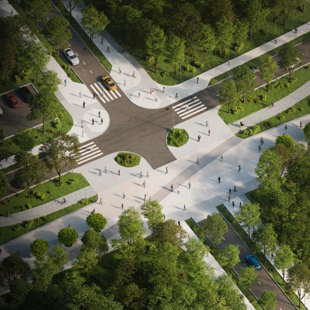 освещение, дорожные знаки, пешеходные переходы