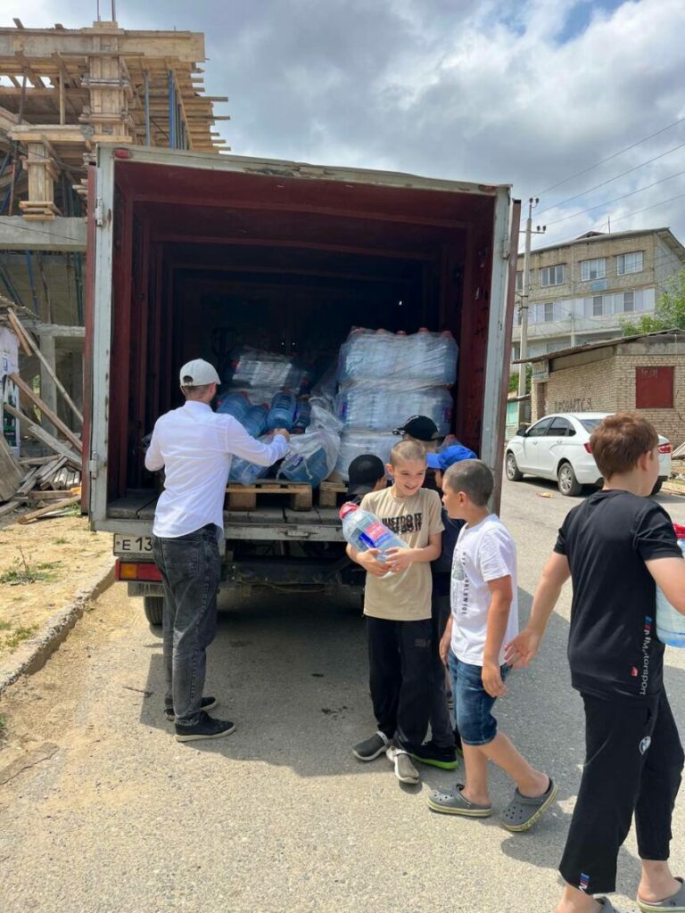 Мы привлекли к работе по сбору, доставке и раздаче бутилированной воды торговые и промышленные предприятия республики: «Денеб», «Зеленое Яблоко», «Избербашский универсальный рынок «Дагпотребсоюз», «Красный рынок», Торговый Дом «Майдан», управляющая компания «Глобал-М», «Стеклопроект», а также гуманитарные Фонды Республики Дагестан «Чистое Сердце», Фонд «Имени Алигаджи Акушинского», «Инсан». Так, более 54 тонн гуманитарного груза (воды бутилированной) было передано Администрации города Буйнакска для распределения по социальным учреждениям, а также жителям города
