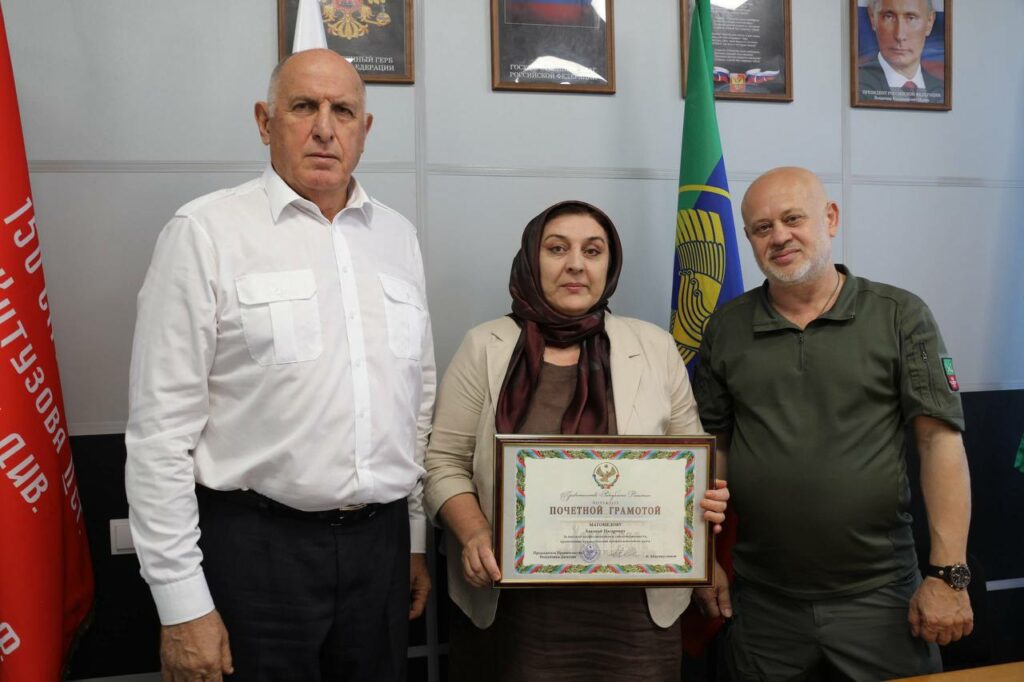 Учителя, врачи, строители и другие специалисты, командированные из Дагестана на освобожденные территории, за проявленные самоотверженность и высокий профессионализм при исполнении профессионального долга в Михайловском районе, награждены почетными грамотами.