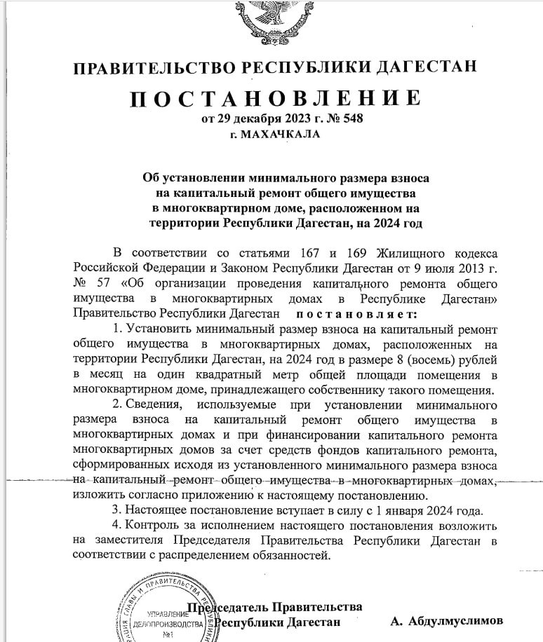 Отметим, что постановлением Правительства РД его величина установлена в размере 8 рублей за 1 кв. м. жилплощади.