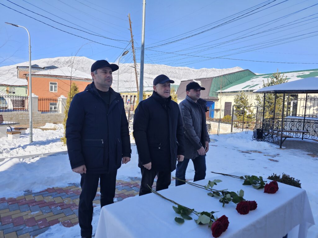 В первую очередь Газимагомедов, вместе с главой района Русланом Гамзатовым, возложил цветы к мемориальным плитам погибшим участникам СВО в Сквере Памяти.