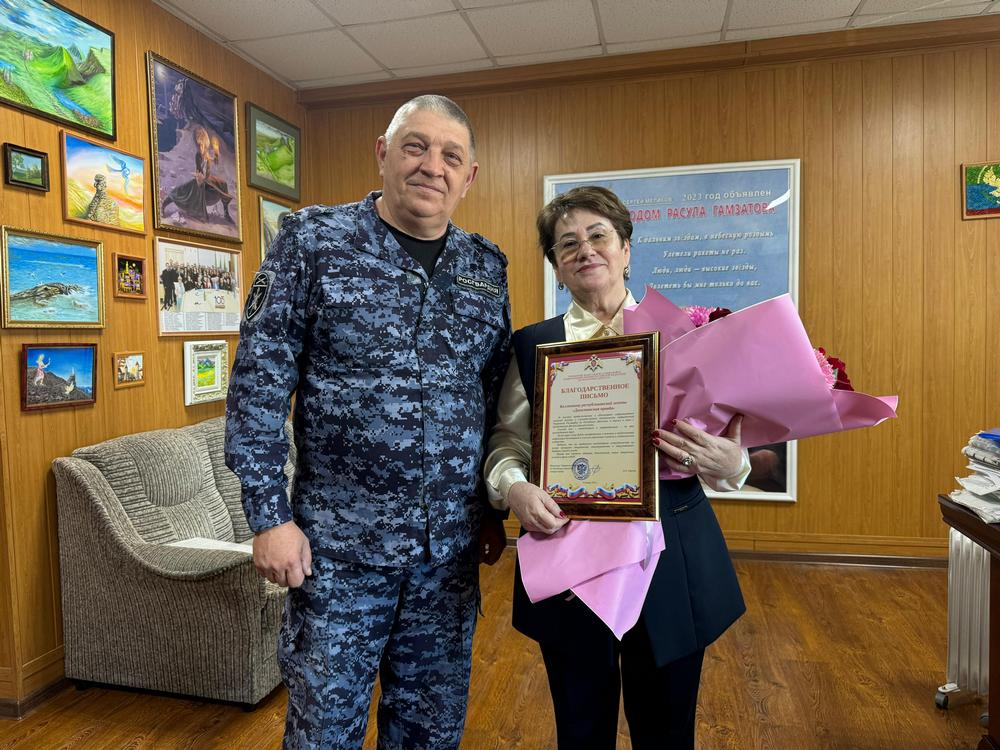 В завершение встречи журналисты были награждены благодарственными письмами, цветами и подарками от имени начальника Управления Росгвардии по Республике Дагестан генерал-майора Александра Орехова.