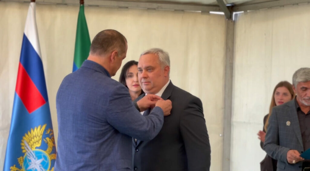 Сергей Меликов вручил орден Почета Республики Дагестан III степени начальнику Упрдор «Кавказ» Александру Лукашуку за большой вклад в развитие дорожного хозяйства Дагестана.
