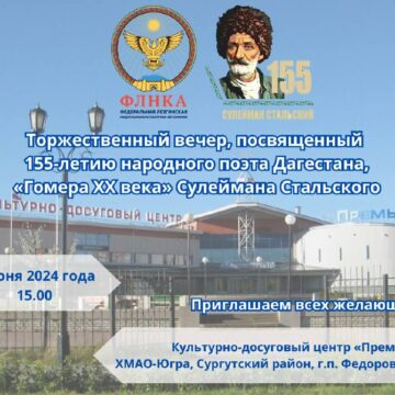 В начале следующего месяца, 2 июня, в городском поселении Федоровский Сургутского района Ханты-Мансийского автономного округа – Югры состоится торжественный вечер, посвященный 155-летию народного поэта Дагестана, классика лезгинской поэзии Сулеймана Стальского. Организаторы мероприятия-ФЛНКА и лезгинские общины ХМАО-Югры. Ведущим мероприятия выступит поэт, телеведущий, руководитель лезгинской редакции Национального вещания РГВК «Дагестан» Владик Батманов. Отметим, что это далеко не...