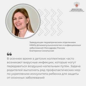 «В осеннее время в детских коллективах часто возникают вирусные инфекции, которые могут передаваться воздушно-капельным путём. Дети, приходя в школу, тесно контактируют друг с другом. Задача родителей выполнять ряд профилактических мер по укреплению иммунитета своего ребенка для защиты от сезонных заболеваний, — рассказала заведующая педиатрическим отделением НМИЦ фтизиопульмонологии и инфекционных заболеваний Минздрава России Екатерина Сокольская. Полностью...