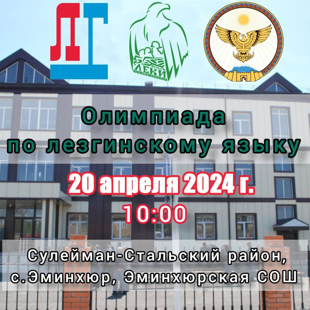 20 апреля 2024 года редакция газеты «Лезги газет» совместно с благотворительным фондом «ЛЕКИ» и ФЛНКА при поддержке администрации Сулейман-Стальского района проведет республиканскую олимпиаду по лезгинскому языку, посвященную 155-летию народного поэта Дагестана Сулеймана Стальского.