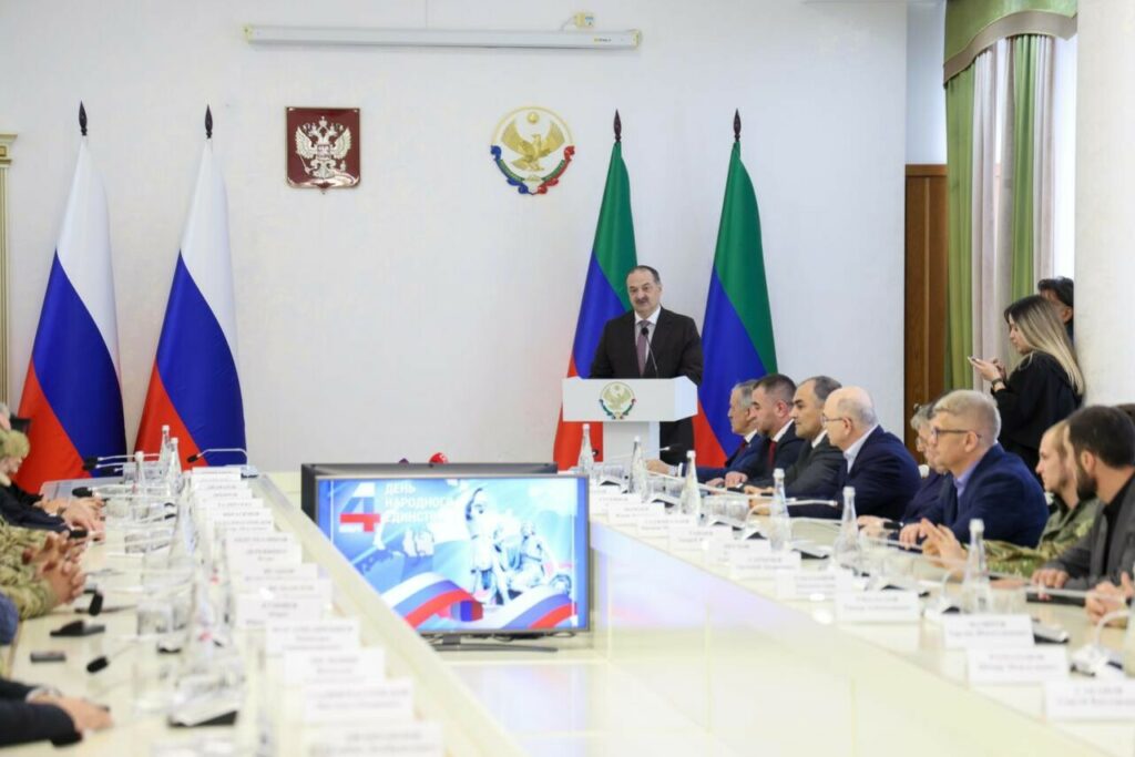 Важно, что дагестанцы выполняют эту задачу сообща: будь то инженер на оборонном предприятии, врач в поликлинике, учитель, объясняющий детям о патриотизме, или студент, который только готовится вступить во взрослую жизнь. Все мы вместе куём общую Победу», — отметил Сергей Меликов на вручении госнаград ко Дню народного единства.