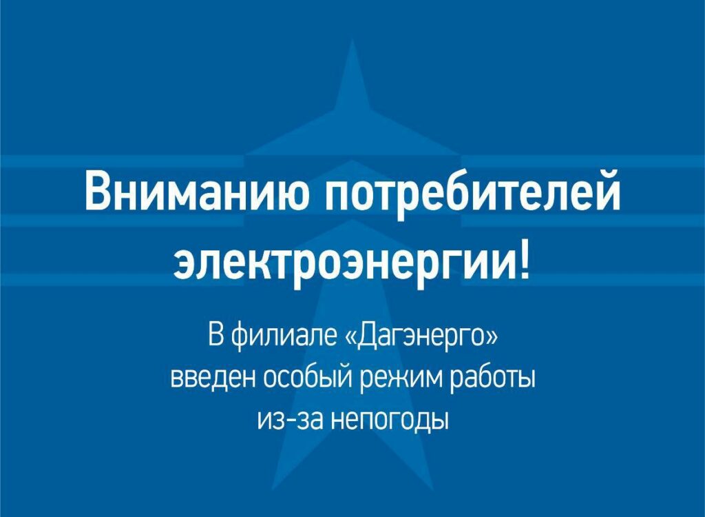 Энергетики «Дагэнерго» находятся в постоянном взаимодействии с региональным управлением МЧС РФ, ЕДДС, органами исполнительной власти и муниципалитетов. Ведётся непрерывный мониторинг обстановки. Установлен особый контроль за работой энергообъектов.