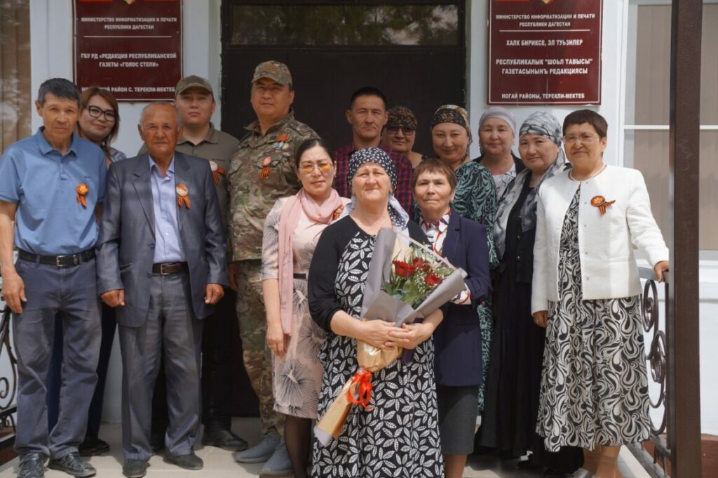 В ГБУ Этномедиахолдинга «Дагестан», в редакции республиканской газеты «Голос степи», что расположено в селе Терекли — Мектеб Ногайского района РД, в преддверии Дня Победы состоялась очередная встреча с потомками Великой Победы – участниками специальной военной операции под названием «Мы никому не отдадим Победы!». На мероприятии приняли участие председатель Совета ветеранов войны, труда, Вооруженных сил и правоохранительных органов Ногайского района Акманбет Сангишиев, участники СВО Солтанбий Балдиев, Марат Рамбердиев, Эсманбет Уразаев, мать погибшего участника СВО Вячеслава Максидова – Елена Чичинадзе, сотрудники редакции.