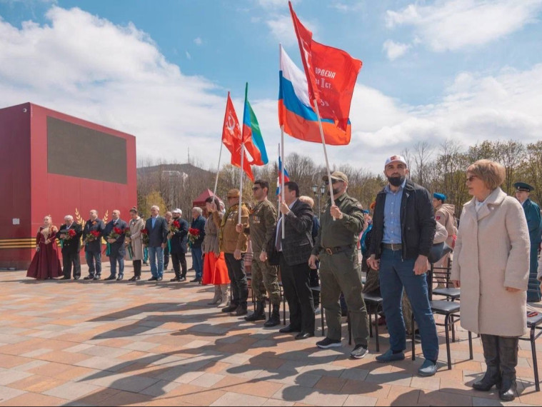 На мероприятии развернули масштабную копию Знамени Победы – штурмового флага 150-й стрелковой дивизии, водружённого над Рейхстагом в 1945 году. В Пятигорск также прибыла делегация из Волгоградской области с памятной копией знамени, которая в прошлом году была оставлена на Мамаевом кургане.