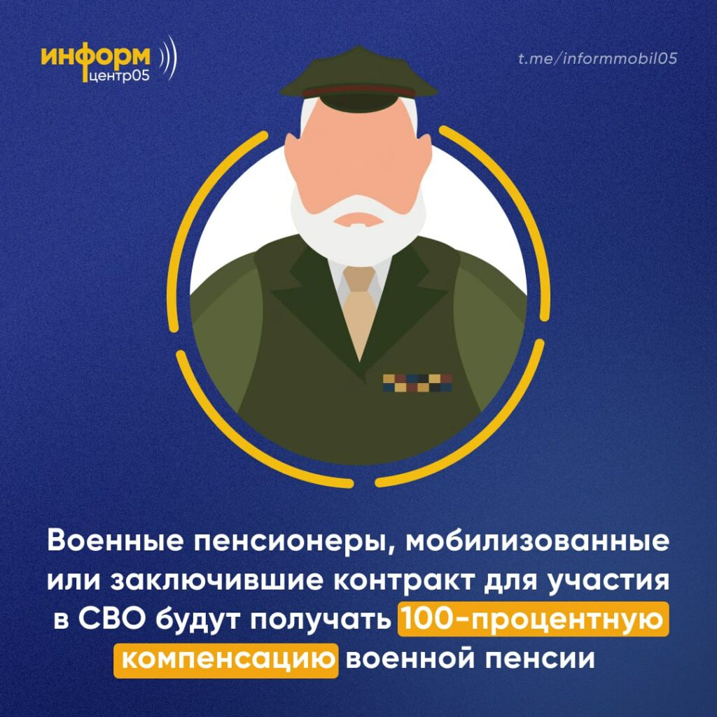Военные пенсионеры, призванные на службу в рамках мобилизации, помимо основных выплат будут получать денежную компенсацию, равную размеру их пенсий — указ Владимира Путина