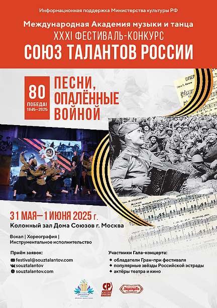 1 июня на сцене Колонного зала Дома Союзов состоится Праздничный Гала-концерт в честь годовщины Победы в Великой Отечественной войне — «Песни, опалённые войной», в котором примут участие обладатели Гран-при фестиваля, популярные звёзды российской эстрады, а также актёры театра и кино.