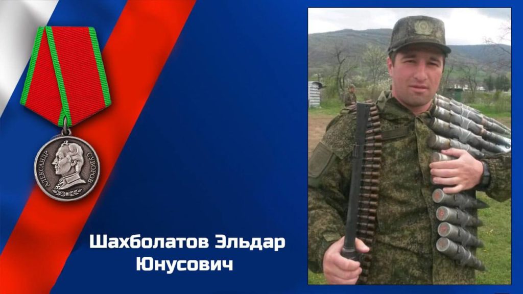За участие в СВО Шахболатов награжден медалью Суворова, которая вручается военнослужащим за личное мужество и отвагу, проявленные в боевых действиях на суше.